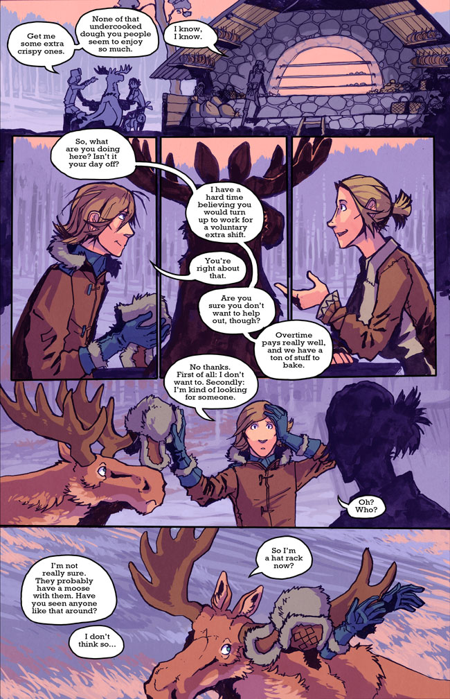 Unlike Paju, who is the same age as Hannu, Joona and Jonna here are two years older than him, which makes them twins. The Viitanen and Kuikka families have been quite close since...always, so these three have known each other since the very beginning of their childhoods, and Joona and Jonna have been pretty much like Hannu's older siblings. Some times keeping him out of trouble, other times deliberately shoving him into it. And they all work at old man Kuikka's bakery slash grocery store. There, a little bit of insight in the relationship functions at play. Oh, and Jonna is the girl-twin, and Joona the boy-twin. Heh, I remember I once had both a Joona and a Jonna in my class back in my teen years, one of our teachers never managed to remember which name belonged to what gender.