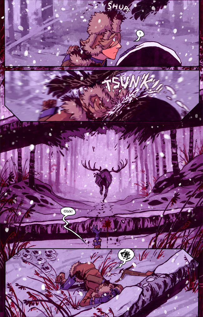 Looks like Hannu isn't a very tempting prey. Ville on the other hand, he's definitely something worth hunting down and ...uh, eating, I guess? Yeah, I really have no idea whether the Moose of Hiisi is carnivorous or not. It doesn't really seem to have guts to begin with, so maybe eating isn't much of a concern. And I guess Hannu has a extraordinarily thick skull or something, since his brain isn't splattered all across the place yet. Actually I think I can provide a more plausible explanation: both the tree trunk and monster beastie here consist of rotting wood, so they're relatively soft after all, meaning less brain splatter. Alternatively: magic. Everything odd that happens is because of magic.