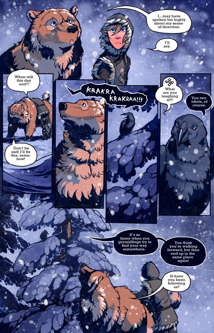 I bet this little birdie here is going to be really helpful. Uh, now that I look at that one close-up panel, it seems like this crow has the exact same expression on its feathery face as that one seagull had in that one panel on that one page. You know the one I mean?