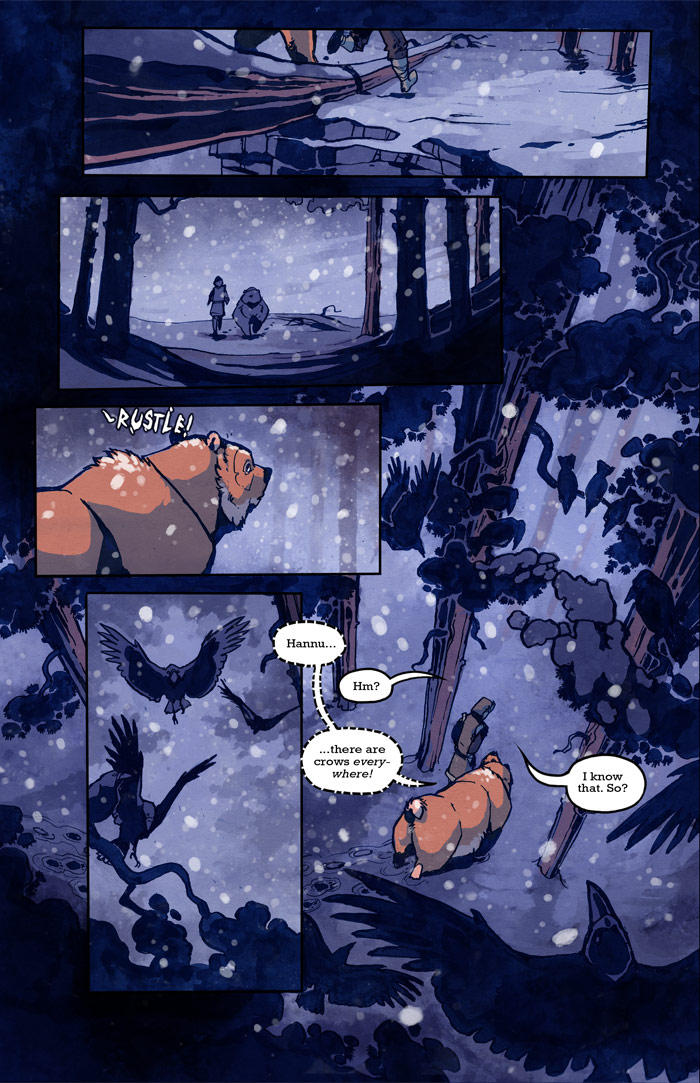 The crows...have entered the scene! Dun-dun-DUU! And the linearts for the last four pages are up on TWC as a new set of vote bait snack. Which reminds me: hoooly cat, the month is almost over again?! How come these things pass so fast these days? Not that I mind graduation day coming and going as soon as possible, but I better start working on my graduation thesis pretty darn soon!