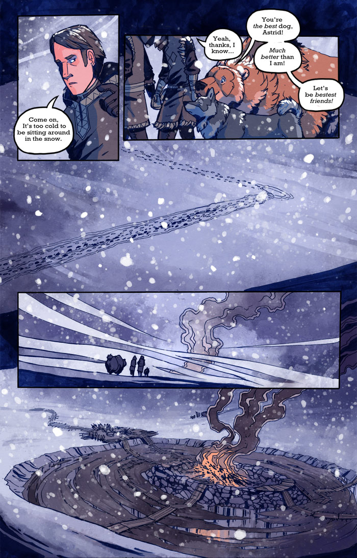 And they're finally back at the bonfire pit. Aww, I can feel the chapter coming to an end, which makes me feel kind of... um, uh... darnit, I can't find the right word in English for this feeling I'm having! All of you, just pretend that I'm feeling exactly the same as you do about the chapter ending, okay?