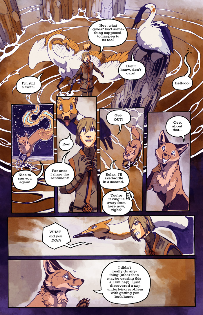 Yaay, I found the right bus in the harbour parking lot and am on my way home! But boo, my MP3-player broke! It was still working this morning in my cabin, but once I plugged it into my little USB charger it said goodbye and died. It's going to be a very boring 8-hour bus ride... But then I'll get to be with my dear computer again! And finally get to fix those pesky typos that you guys have found these last ten days. And check my email. AND have an easier time answering comments, I've missed that. So see you all tomorrow with the last page of the week, but not the last page of this chapter!