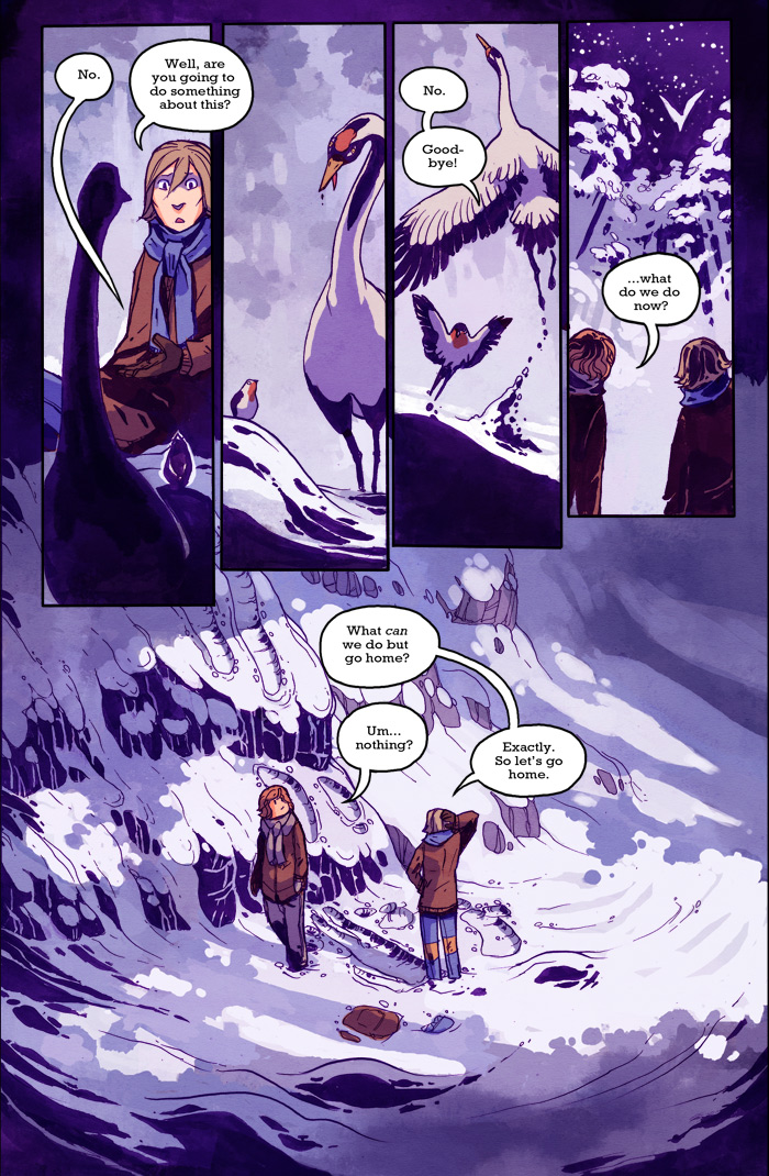 Yeah, Ville is stuck like that. Tomorrow will be the last page before the epilogue (that's now 6 pages longer than it originally was) starts, so see you then. Next week we'll have the customary inter-chapter break of a few days while I put together the final layout for the site. Oh, and tomorrow all the backer info from the print drive should be organized to the point that I can start gathering info on who upgraded to what level, so keep an eye out for instructions on that in the morning too. It'll only concern those upgrading from one level to another, you'll all be able to select your extra books/postcard packs and stuff directly in the Backerkit interface next week. :3