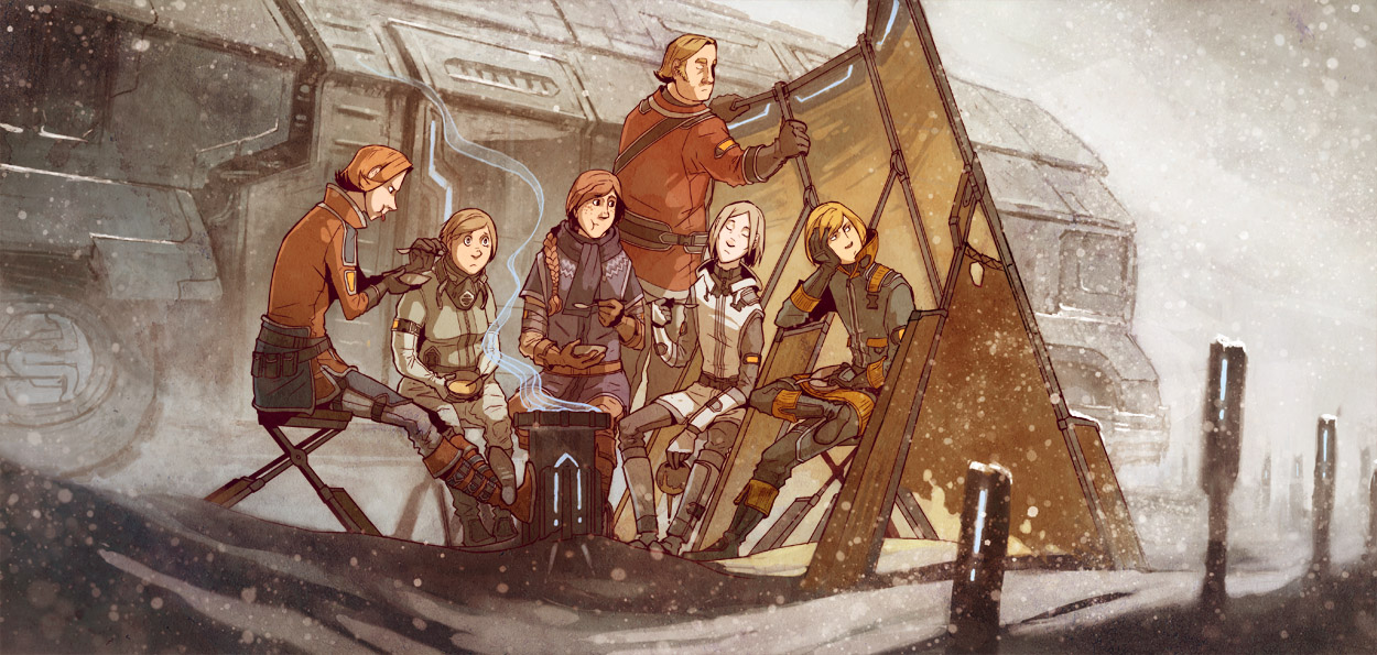 Main cast of my upcoming comic project, which now goes by the working title Stand still. Stay silent.