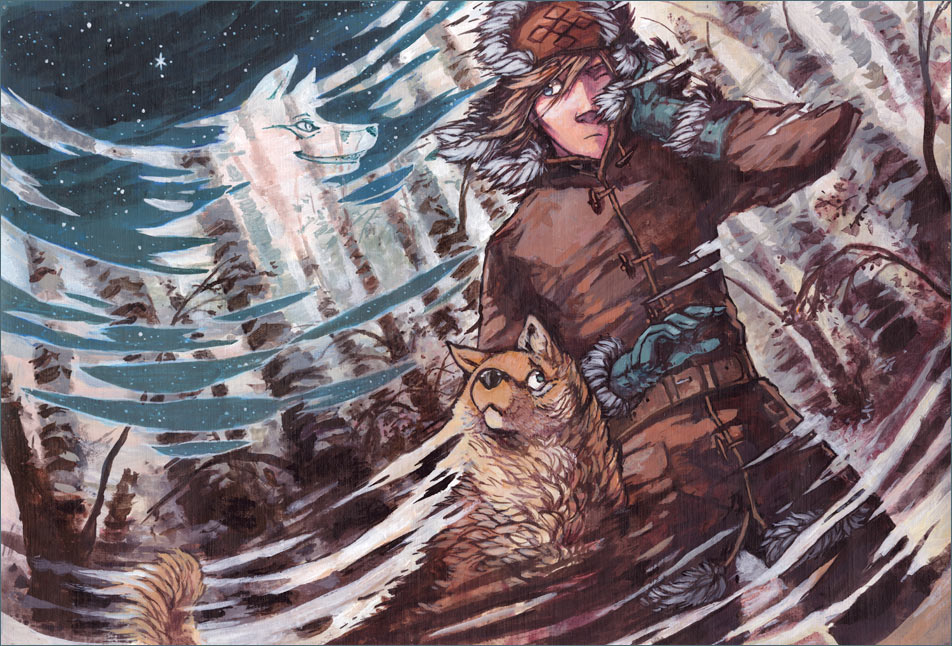 Another acrylic painting, a random scene with Hannu, Ville and Puppy-Fox. This was another attempt at figuring out whether I love acrylics or hate them. And my answer is a resounding: "huh, I dunno".