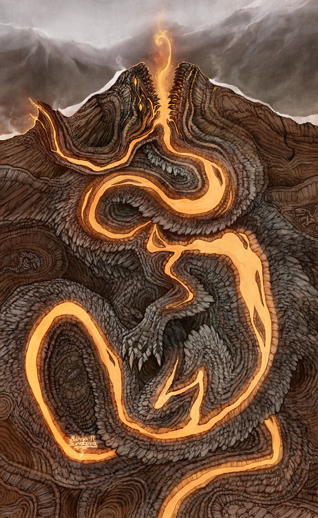 Haven't we all some times played with the idea that volcanoes could be huge dragons stuck beneath the earths surface, perhaps just slumbering there peacefully?